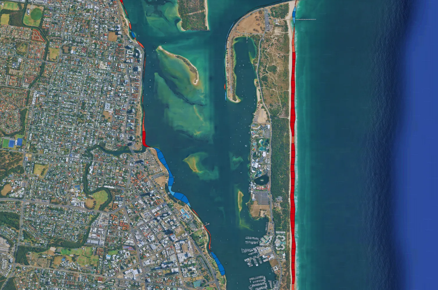 • Heatmap analysis (with customisable thresholds) to identify erosion, storm surge and ecosystem degradation